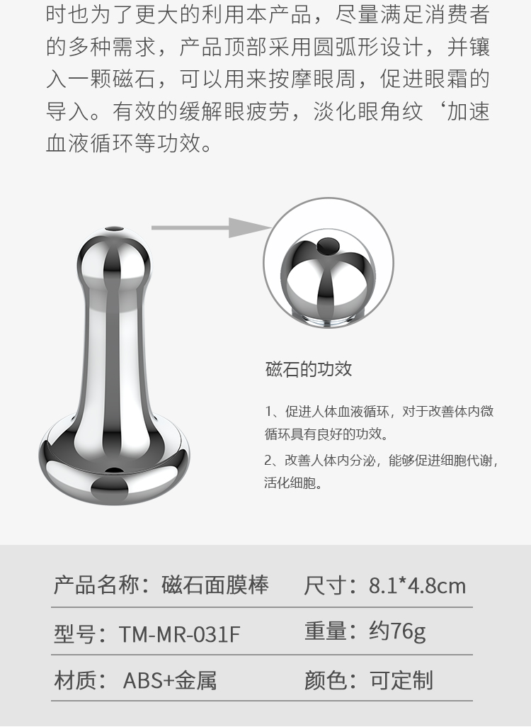 超大磁力及特別磁場 快速有效清潔磁泥面膜 清潔導入一機多用 磁泥面膜搭檔,沁透滋養(yǎng) 促進下一步美妝產品的吸收 促進肌底微循環(huán),令肌膚煥然一新 ,磁力面膜脫落棒-031F磁力面膜脫落棒-031F磁力面膜脫落棒," />
