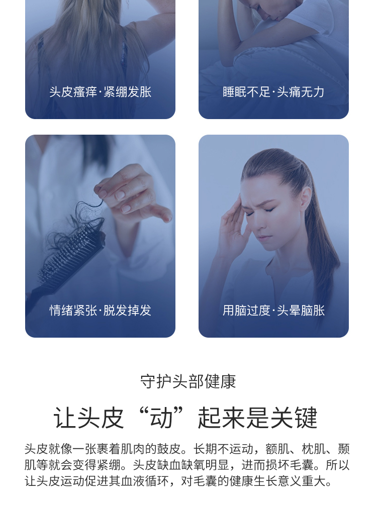 改善疲勞,每次使用15分鐘左右,有助于頭發(fā)的生長(zhǎng)