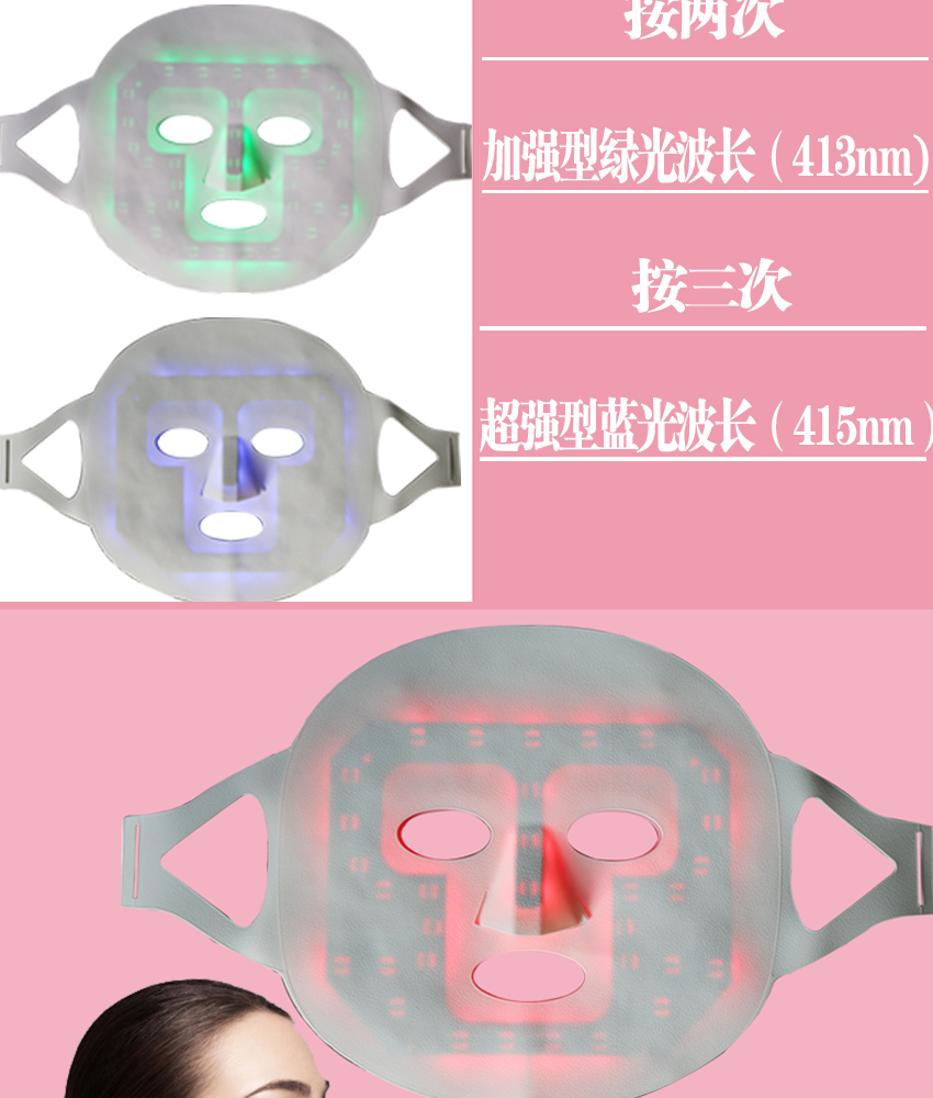 綠光,具有平衡和穩(wěn)定的作用,緩解緊張的神經(jīng)和排除水腫。能安撫、平衡皮膚,治療皮膚松弛及不褪色的疤痕和微血管擴(kuò)張。,紅藍(lán)綠光子嫩膚面罩-113紅藍(lán)綠光子嫩膚面罩-113光子面罩," />