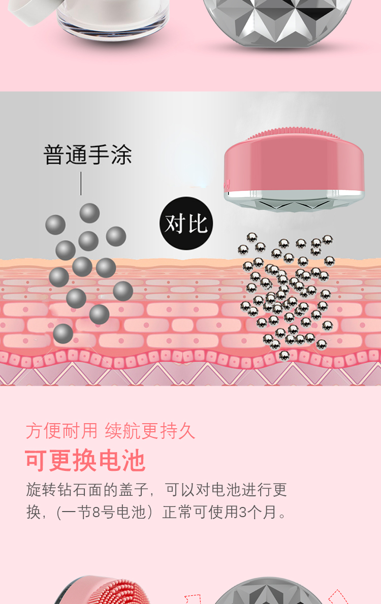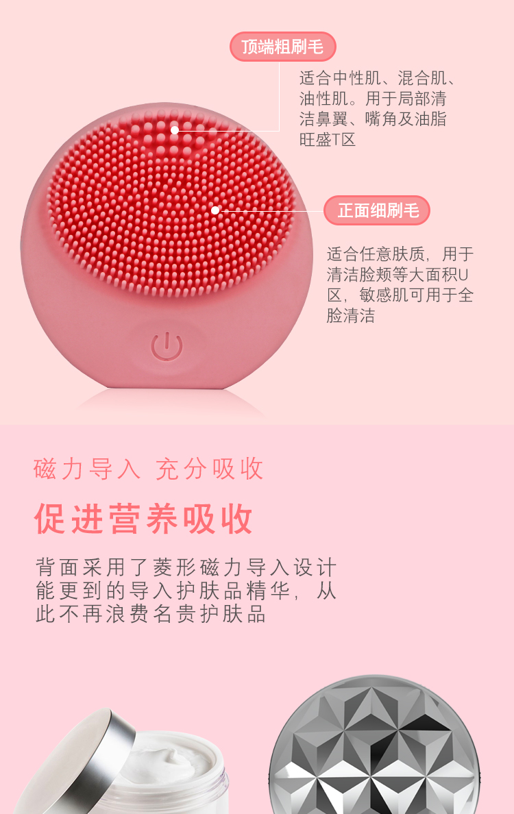 安心親膚的食品級硅膠材料,潔凈不傷臉 每天溫和深層清潔毛孔和污垢 有效清除毛孔內99%的污垢,角質?油垢 背面離子導入,促進下一步化妝品的吸引 促進血液循環,令肌膚煥然一新 電池充電,隨用隨裝 ,多功能旅行裝磁力導入潔面儀多功能旅行裝磁力導入潔面儀," />